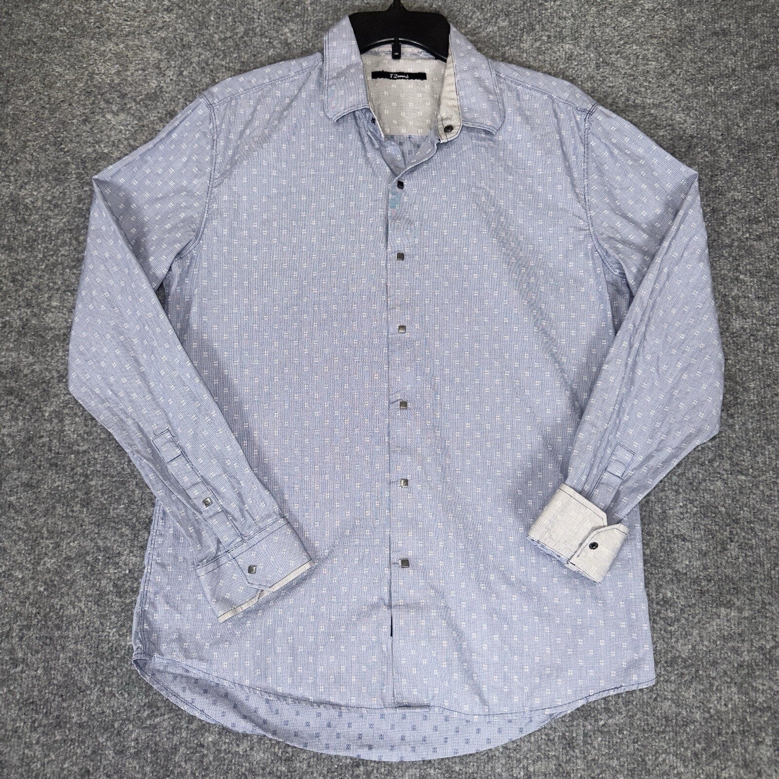7 Diamonds Shirt Mens M Blue Flip Cuff Pearl Snap Long Sleeve Button Up Adult