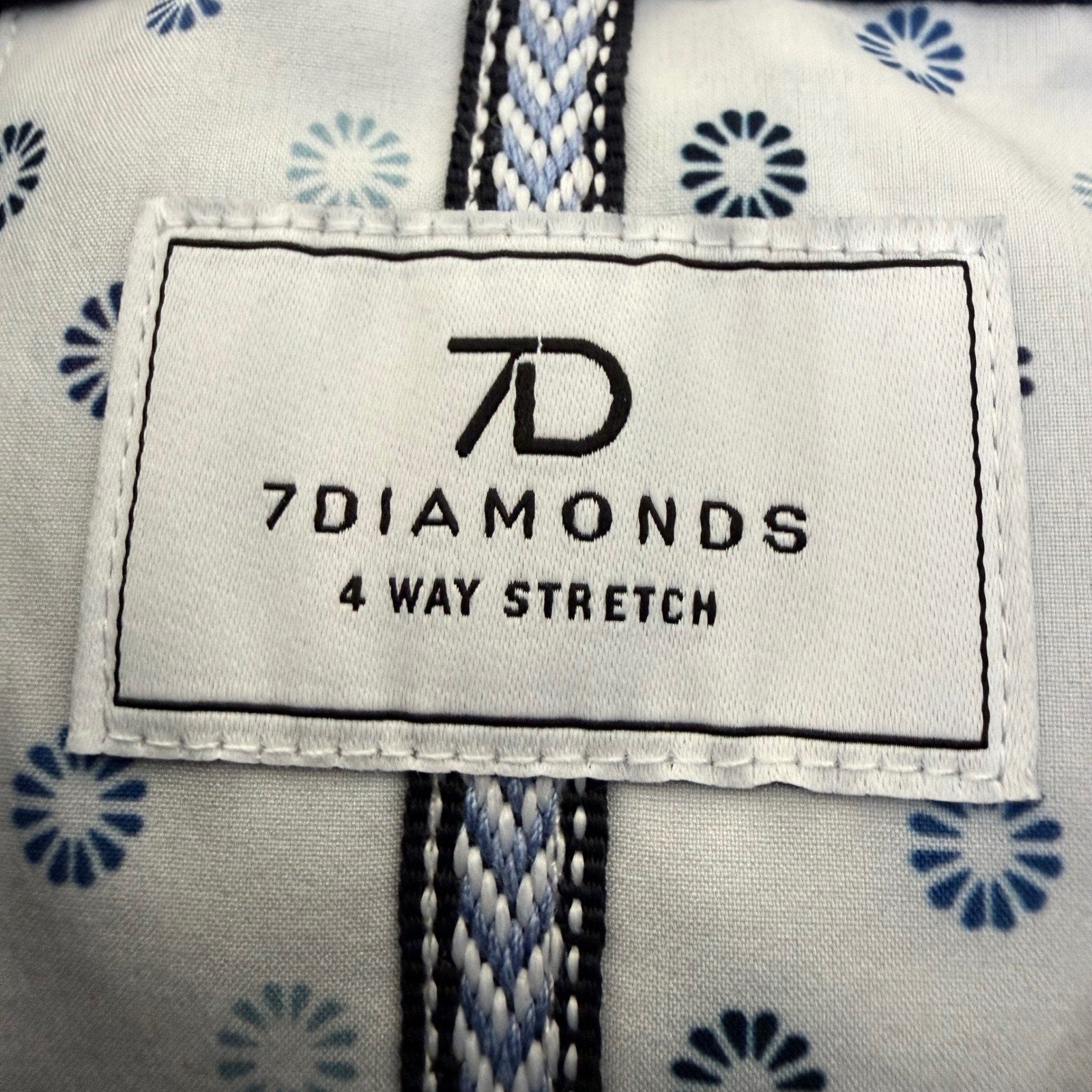 7Diamonds Mens Short Sleeve Button Up Shirt Small Navy Blue Geometric Stretch