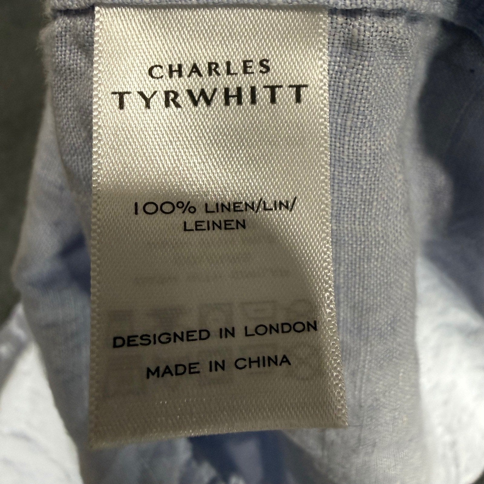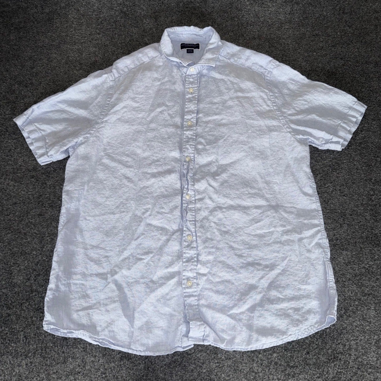 Charles Tyrwhitt Mens XL Blue Linen Short Sleeve Button Up Shirt Smart Casual