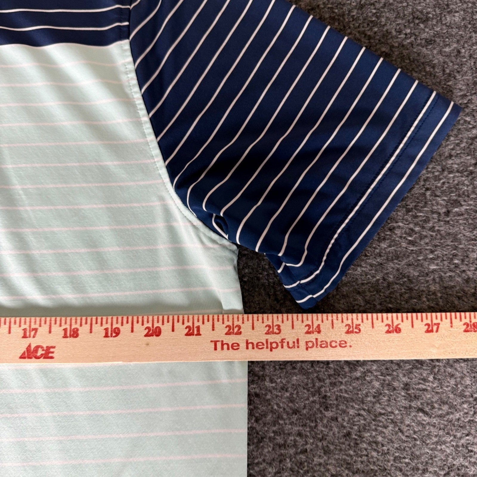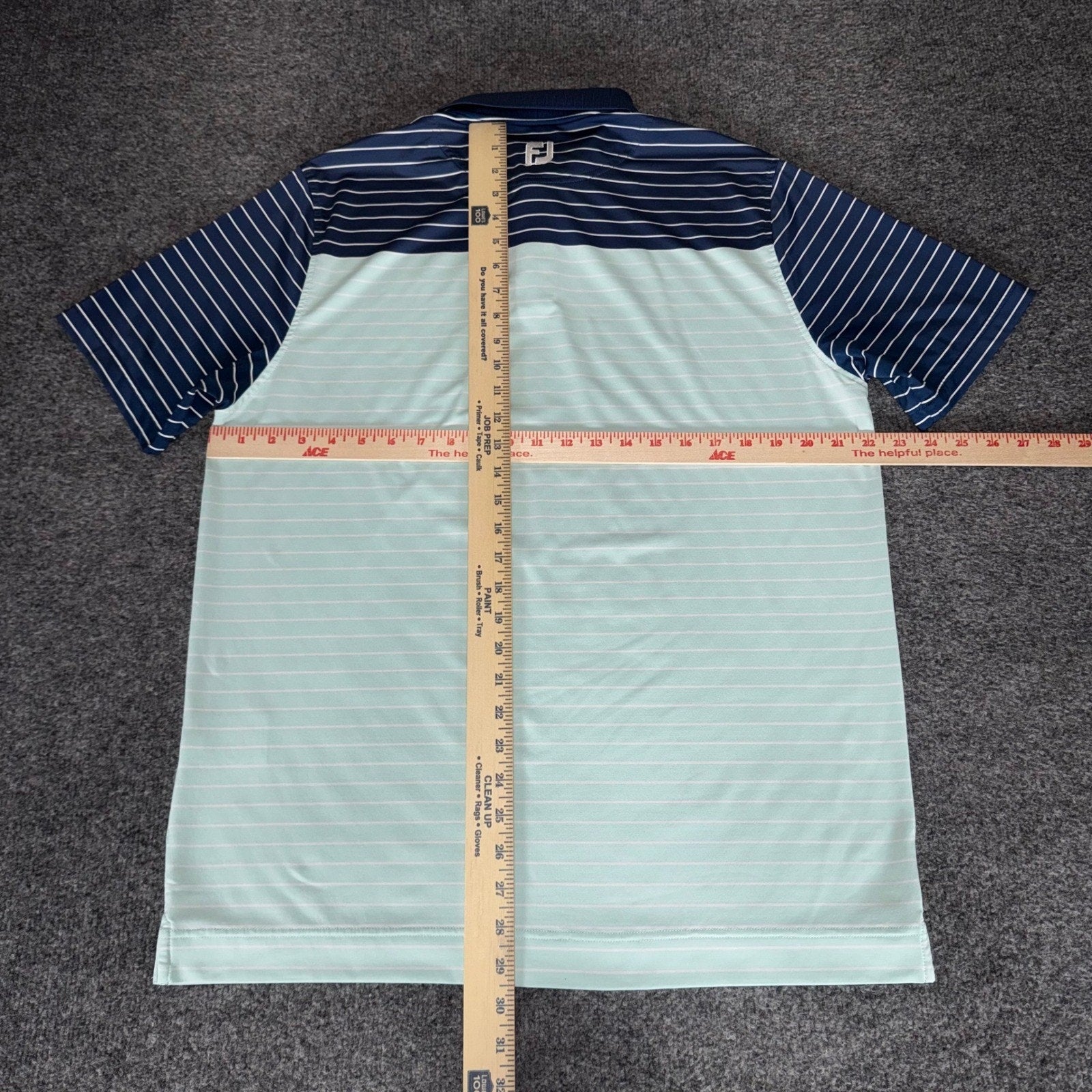 FootJoy Mens Large Athletic Fit Striped Golf Polo Shirt Mint Navy Blue Stretch