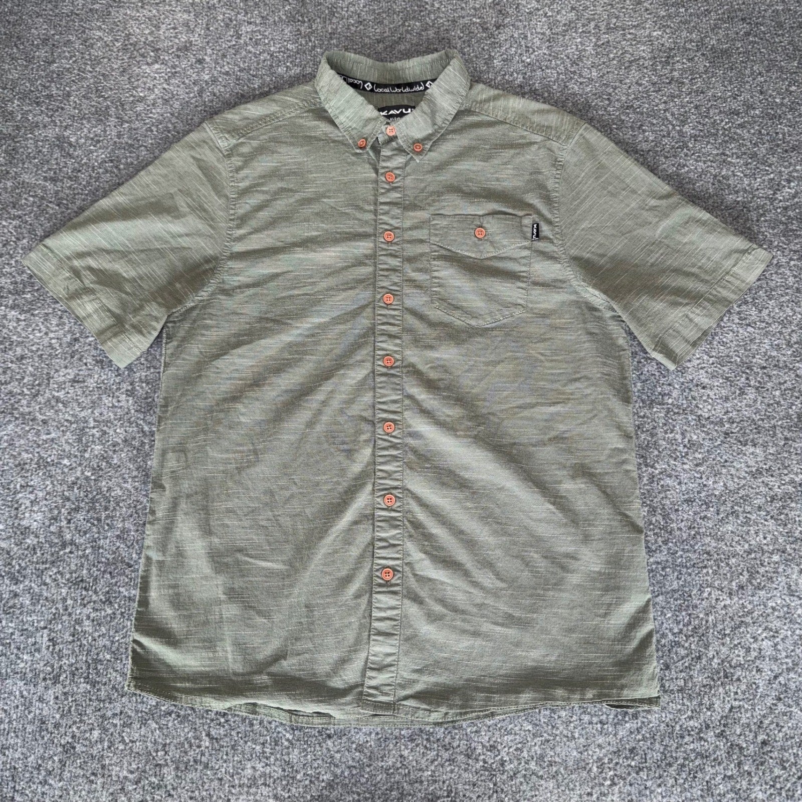 KAVU Shirt Mens Large Green Short Sleeve Button Up Hiking Outdoor Casual Trail