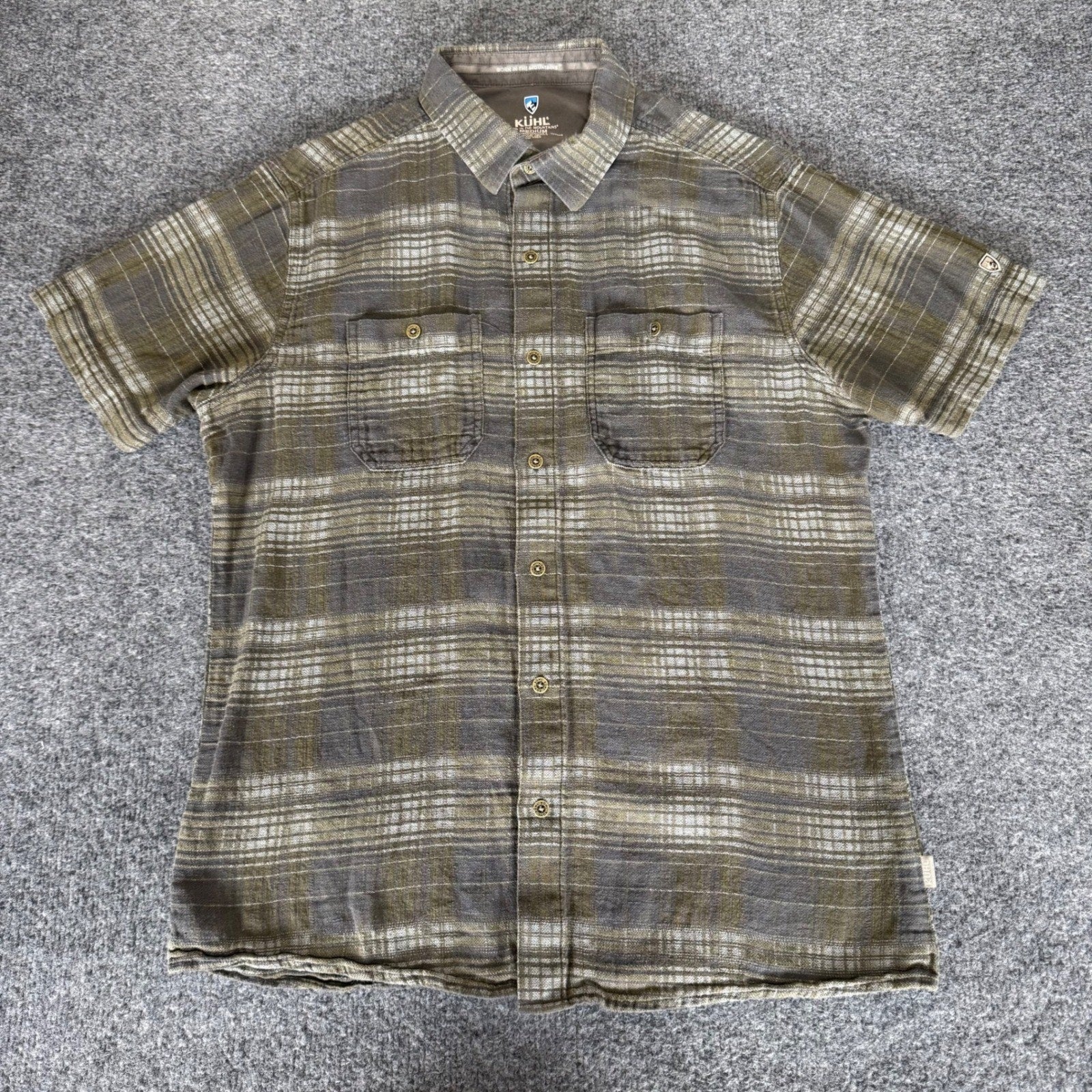 Kuhl Skorpio Shirt Mens Medium Linen Blend Button Up Short Sleeve Outdoor Hiking