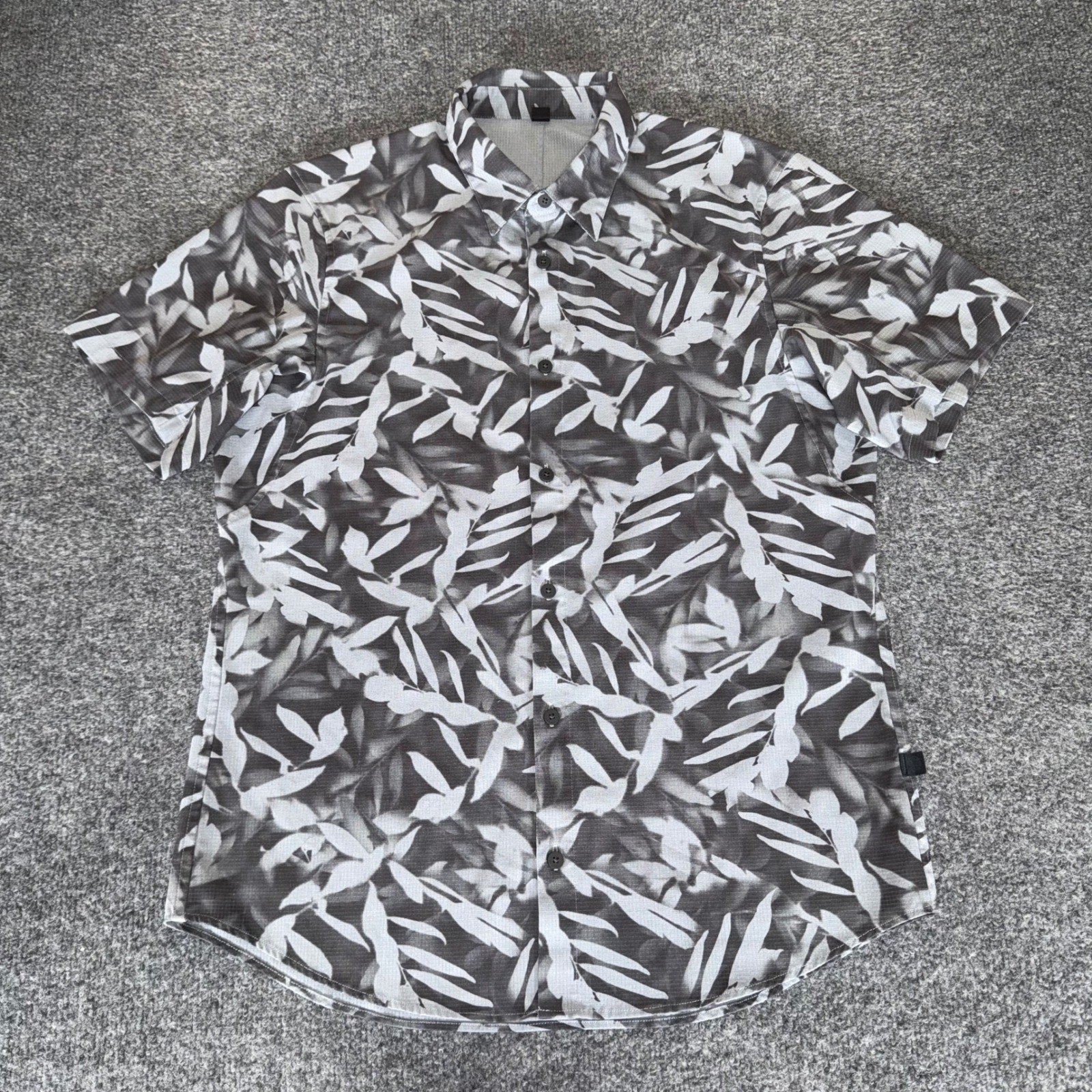 Lululemon Airing Easy Shirt Mens Medium Gray Tropical Leaf AOP Short Sleeve Casual