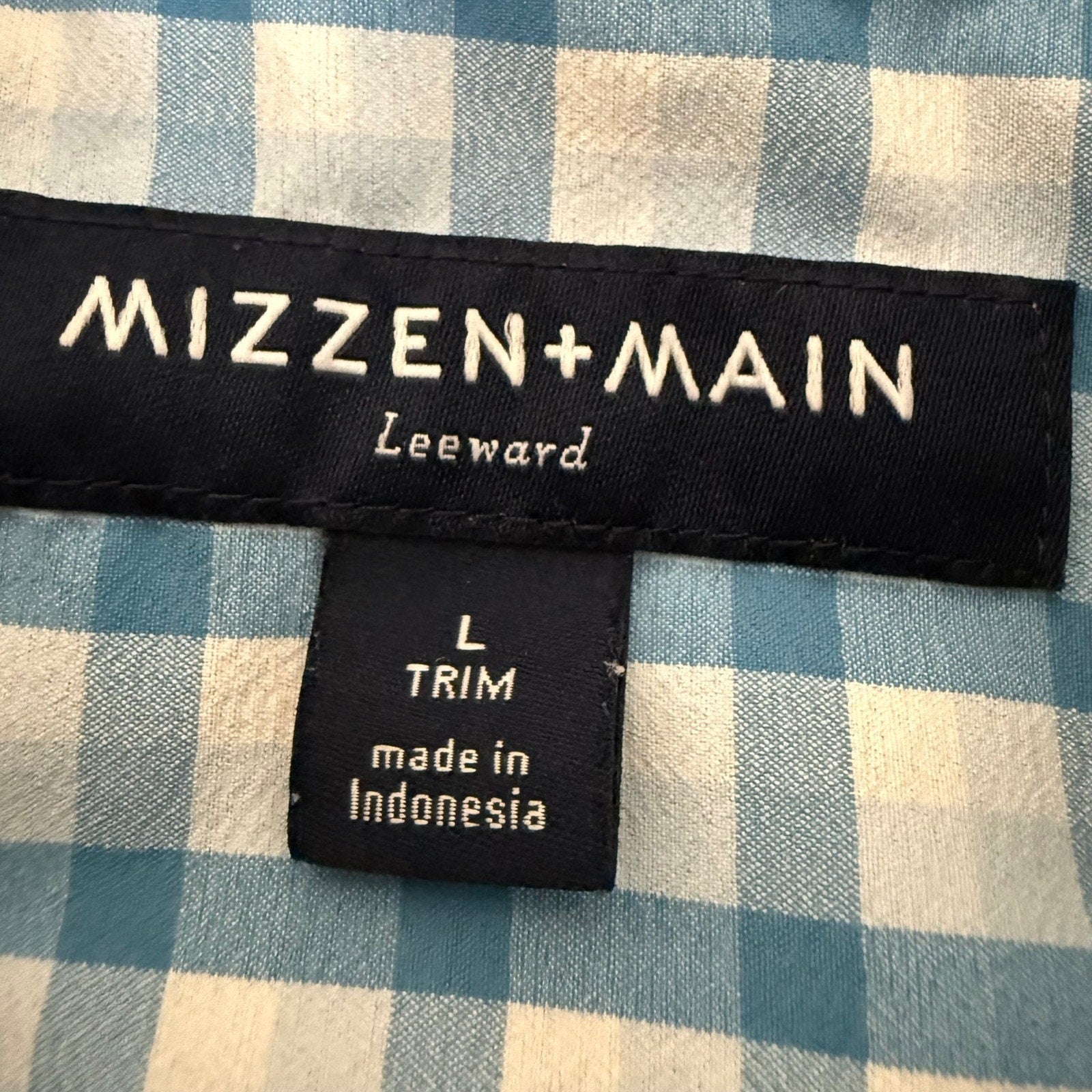 Mizzen+Main Shirt Mens Large Blue White Gingham Trim Fit Stretch Performance