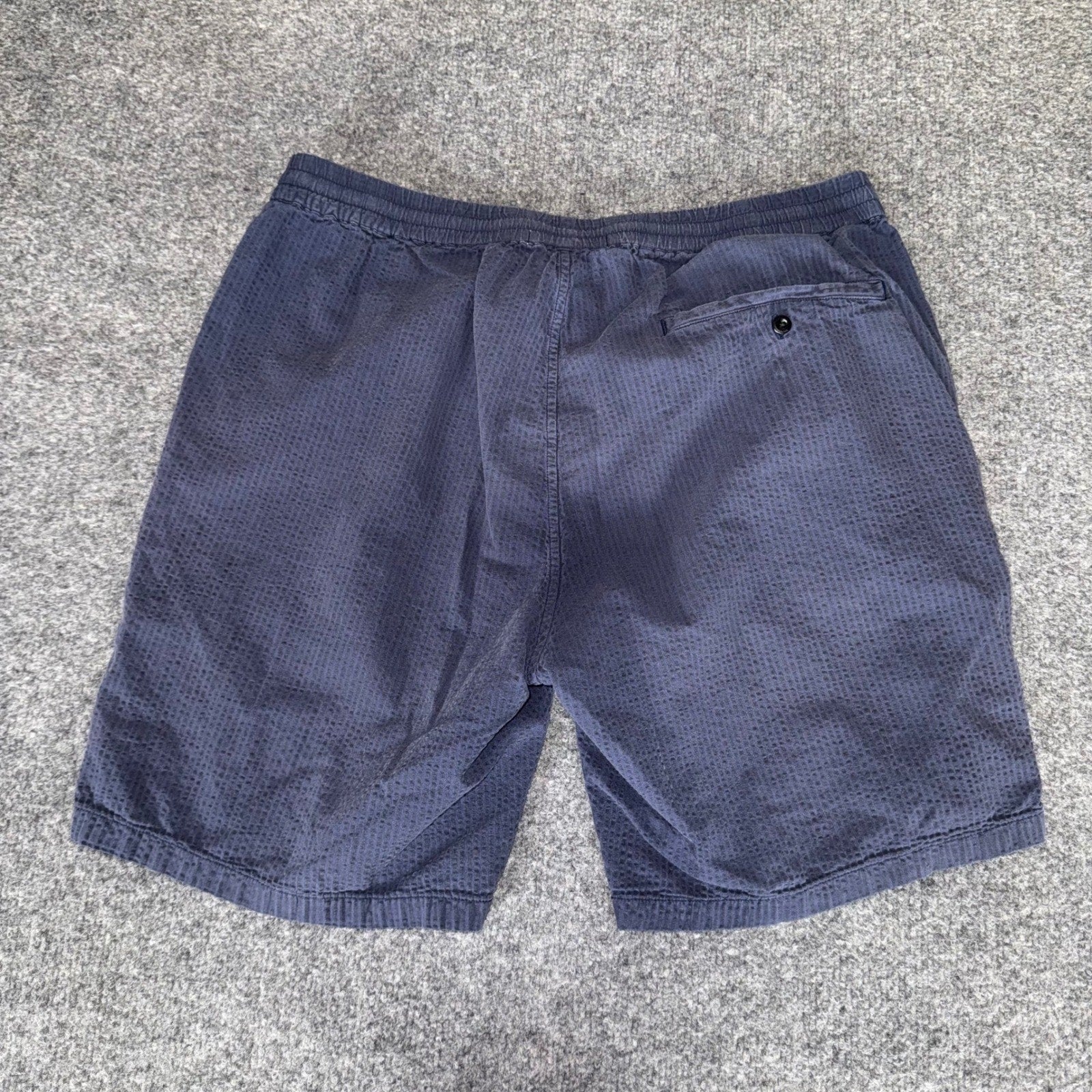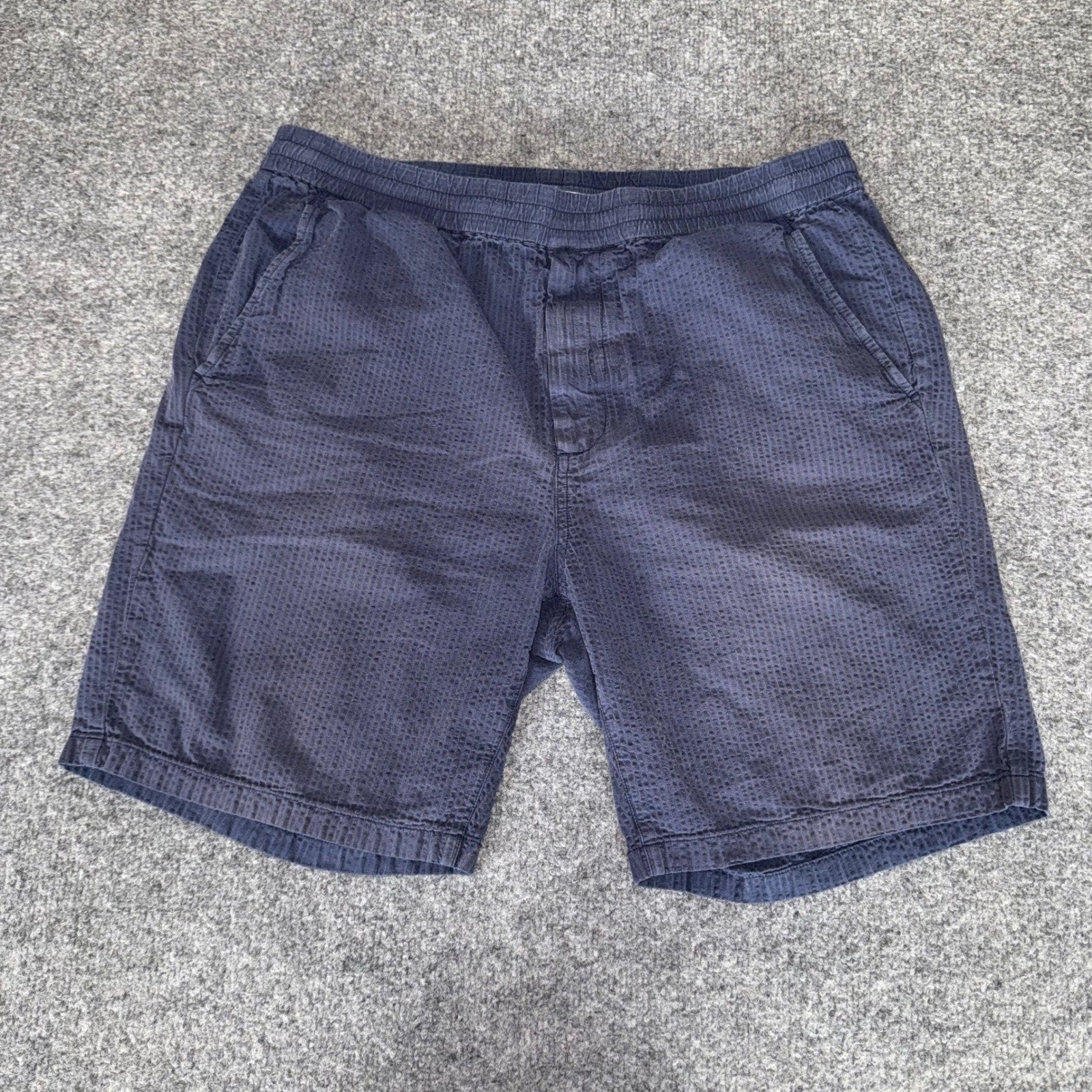Outerknown Mens Large Navy Blue Seersucker Shorts Sustainable Casual Surf Summer