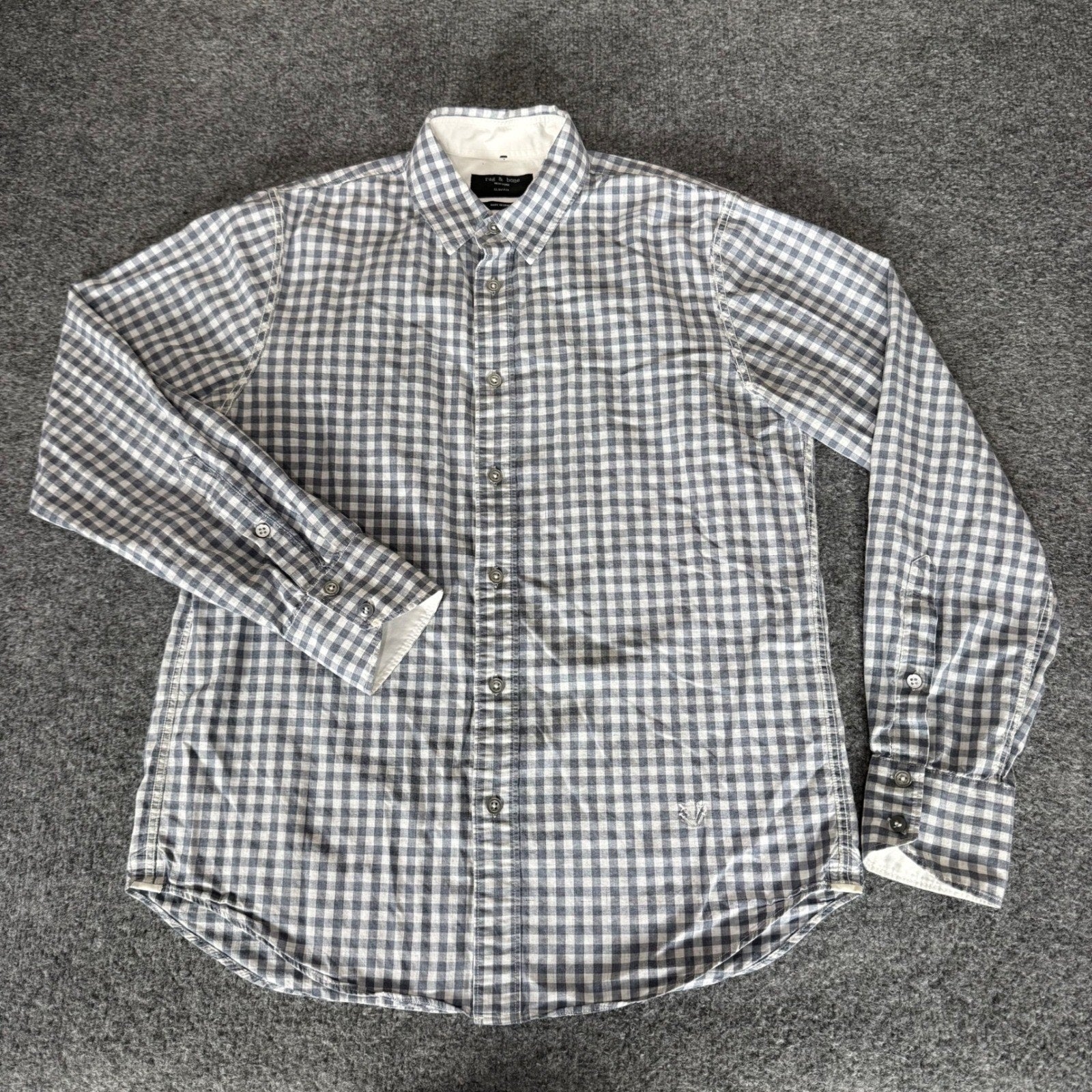 Rag & Bone Mens Slim Fit Gingham Button Up Shirt Small Blue Gray Casual Modern