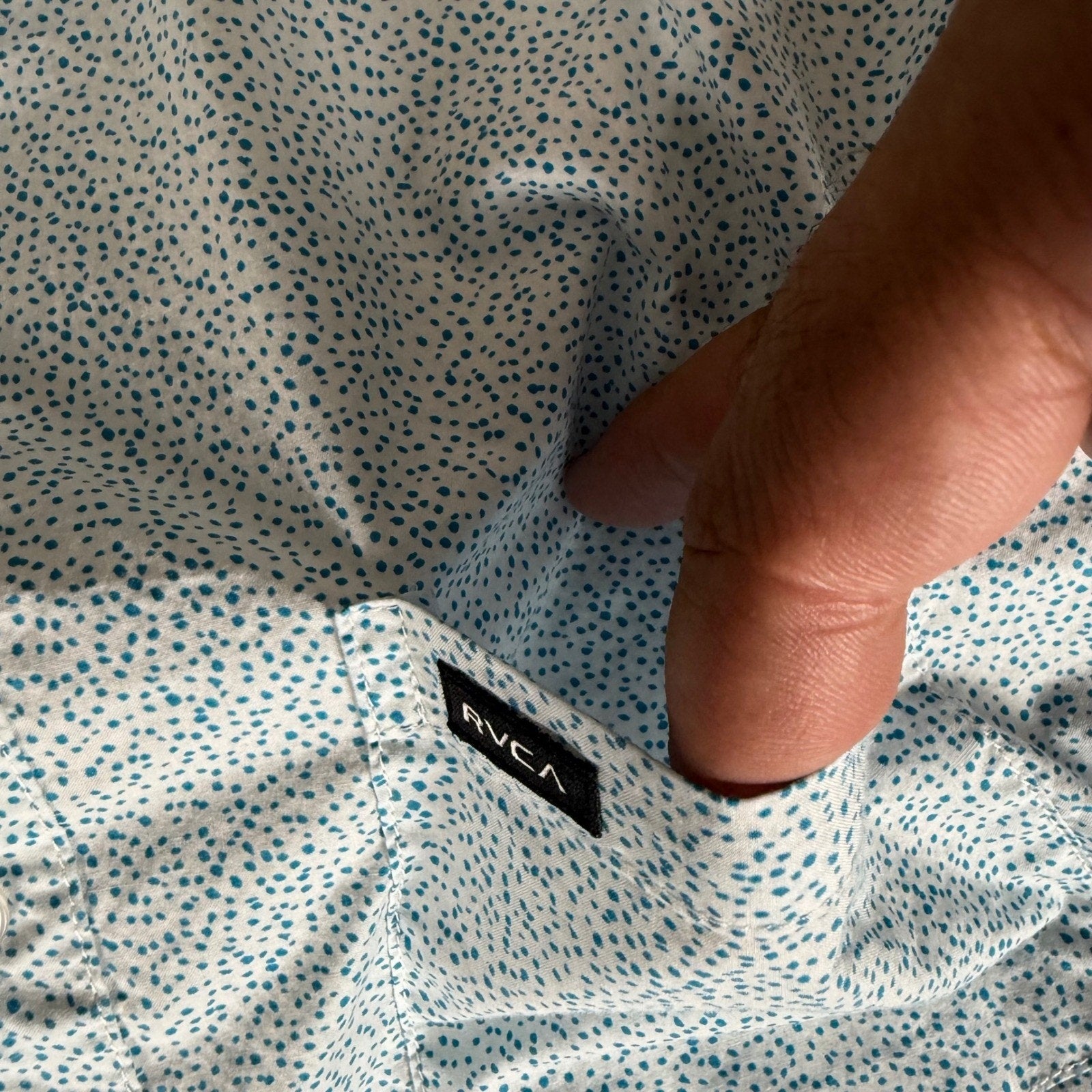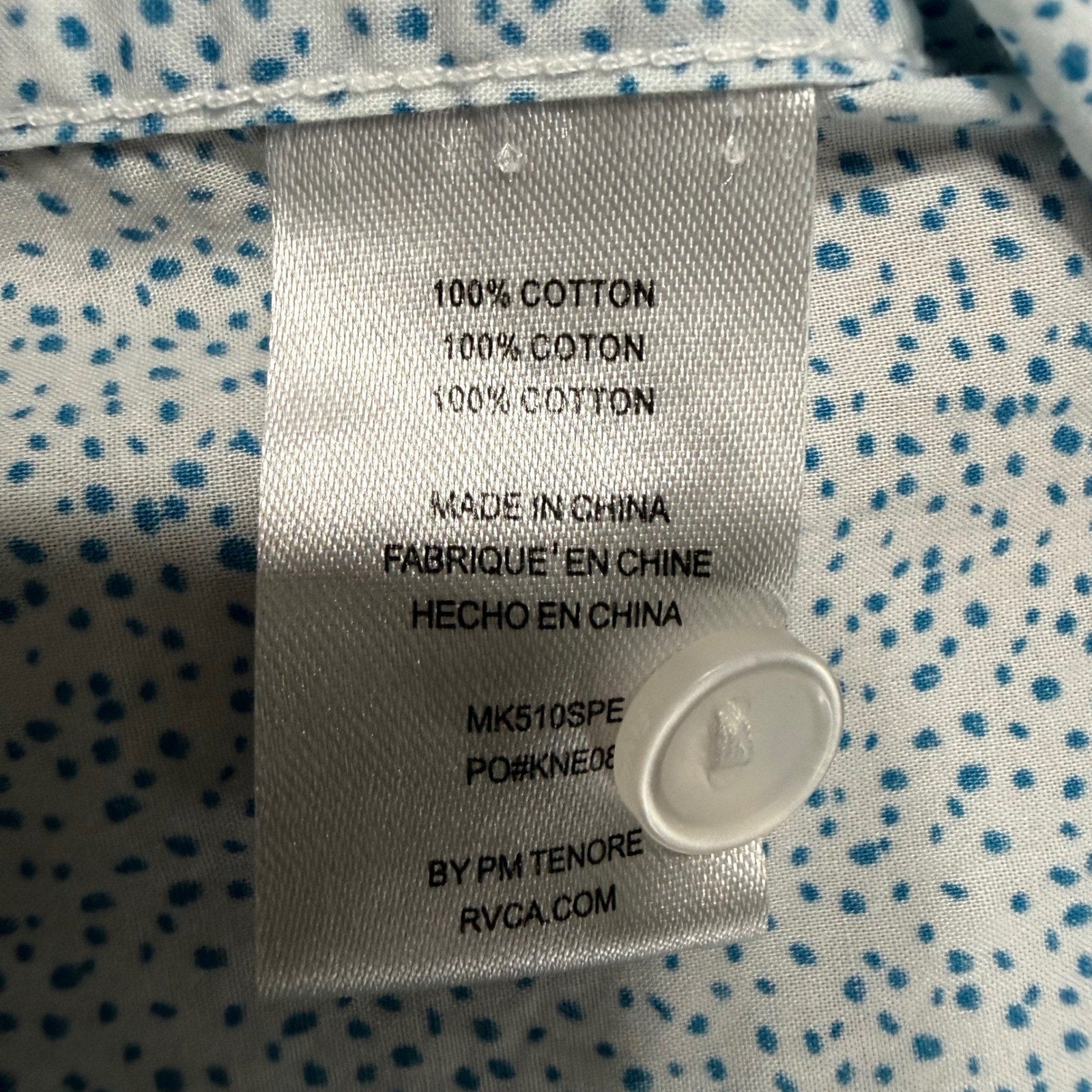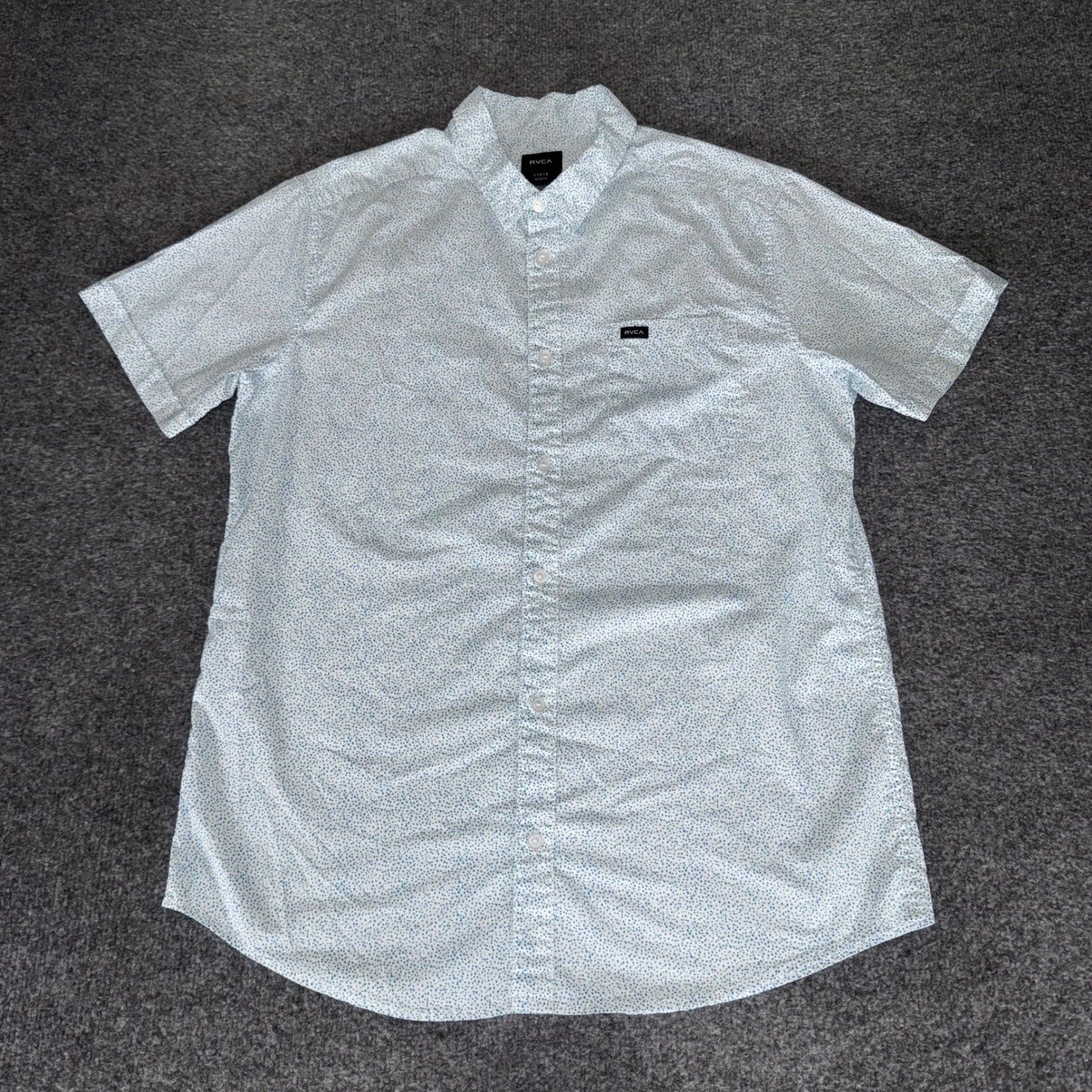RVCA Mens Large Slim Fit Short Sleeve Button Up Shirt Blue Micro Dot Casual