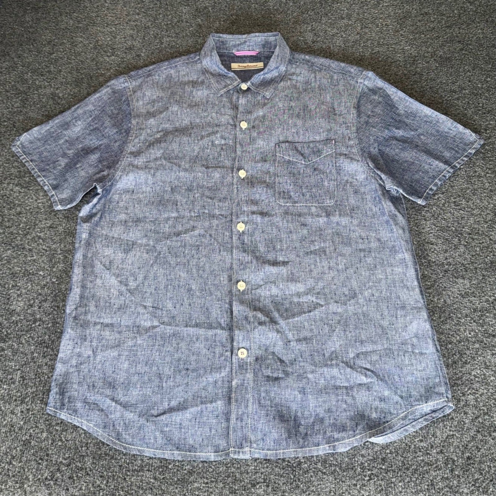 Tommy Bahama Linen Shirt Mens Large Blue Short Sleeve Button Up Casual Resort